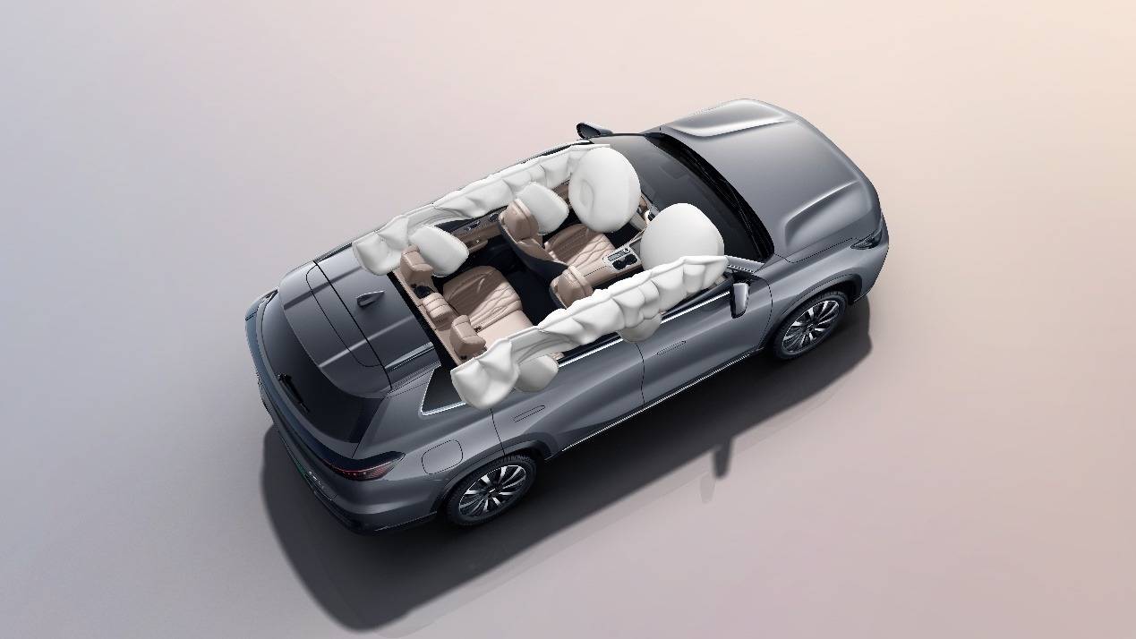 安全性能上,风云T8同样表现出色。其采用了全球五星安全标准打造,整车高强度钢占比达80%、热成型钢占比达20.6%,防撞钢梁厚度达2.8mm,配有170mm的超宽吸能盒,能在发生碰撞时有效保障乘员舱的完整性。同时,风云T8还配备了9个安全气囊,其中贯穿式侧气帘长度达1605*505mm,碰撞6秒气囊内压仍能大于65%,进一步提升了出行安全性。在此次发布会上,风云T8还成功挑战了6倍自重的安全测试,彰显了其硬核的安全实力。